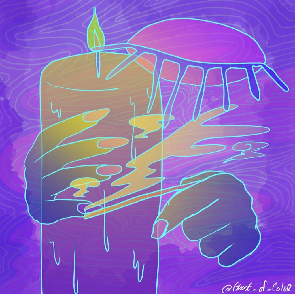 I would stay up in my room, turn off the main lights and turn on my night lights. Sometimes I’d be up talking to friends online, we would all be drunk and high. Other times I’d be raving alone with my headphones on. I would always have candles on, the nights felt so cold. The combination of night lights and candles had such a profound effect on me. I was finally in control of my environment. I would start to pray.